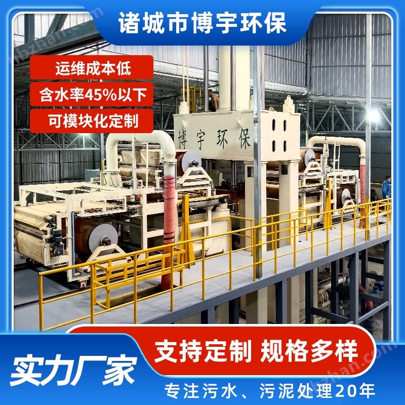 2、深度脫水含水率45%以下:運(yùn)用新型污泥超高壓脫水工藝,能夠?qū)⒑?80%-85% 的污泥物料深度脫水到 45% 以下。深度脫水后的污泥體積大幅縮減,大大提升存儲(chǔ)與運(yùn)輸便利性,顯著節(jié)省成本與空間。